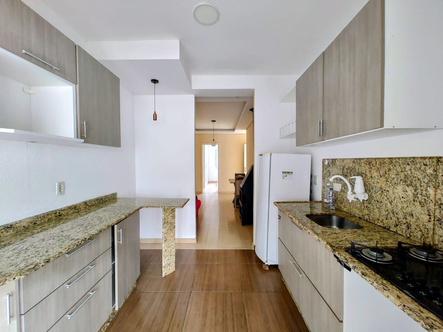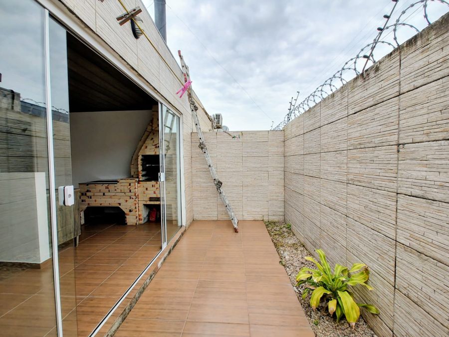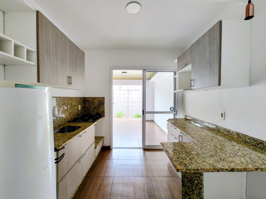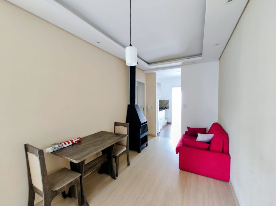 São 2 dormitórios, ambos suítes, sala de estar com lareira, cozinha integrada, varanda com churrasqueira e pátio ensolarado voltado para o sol da tarde. Conta ainda com vaga de estacionamento privativa e área de serviço.