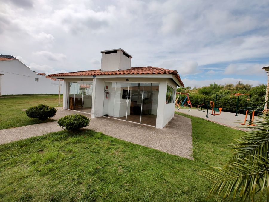 O condomínio conta com portaria 24 horas, salão de festas, playgrounds, quiosques com