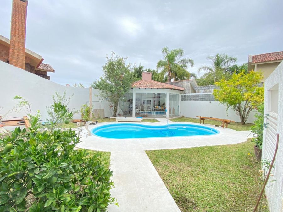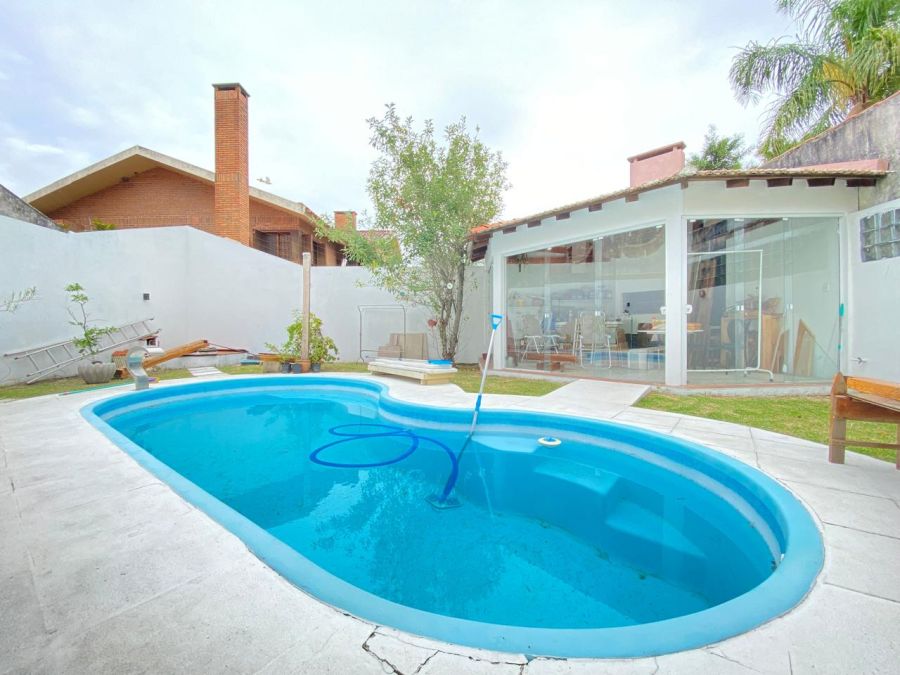 A casa oferece cozinha com móveis, sala de jantar, escritório, sala de jogos, alpendre e quarto de hóspedes, além de 3 dormitórios, sendo uma suíte. Para completar, uma área gourmet integrada à piscina, feita para celebrar conquistas e criar memórias inesquecíveis.