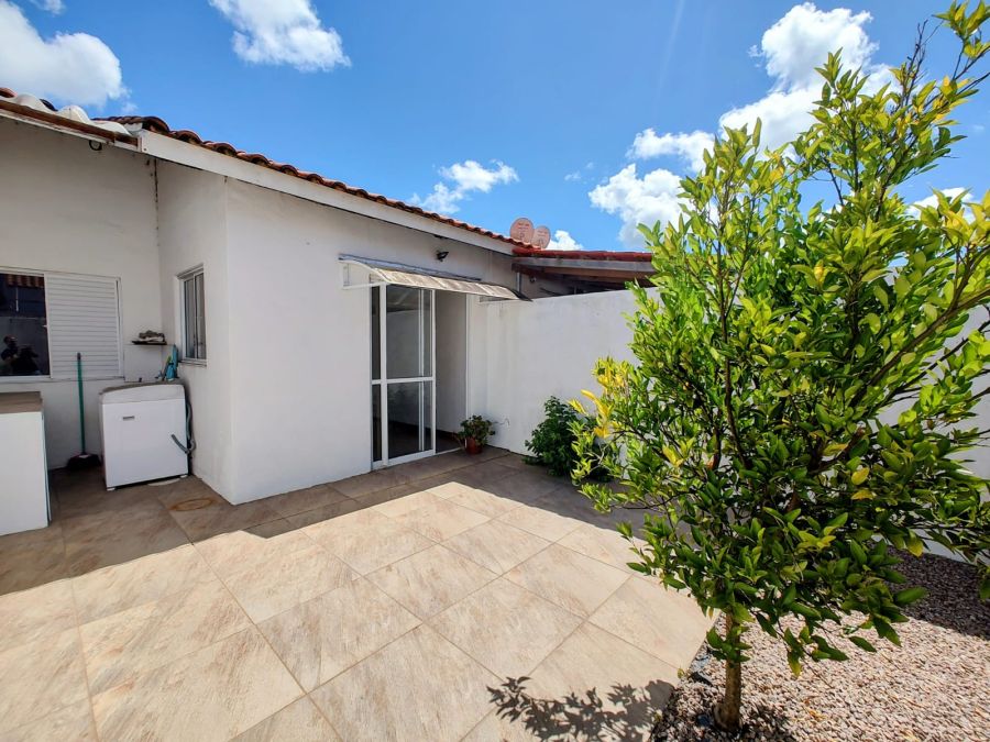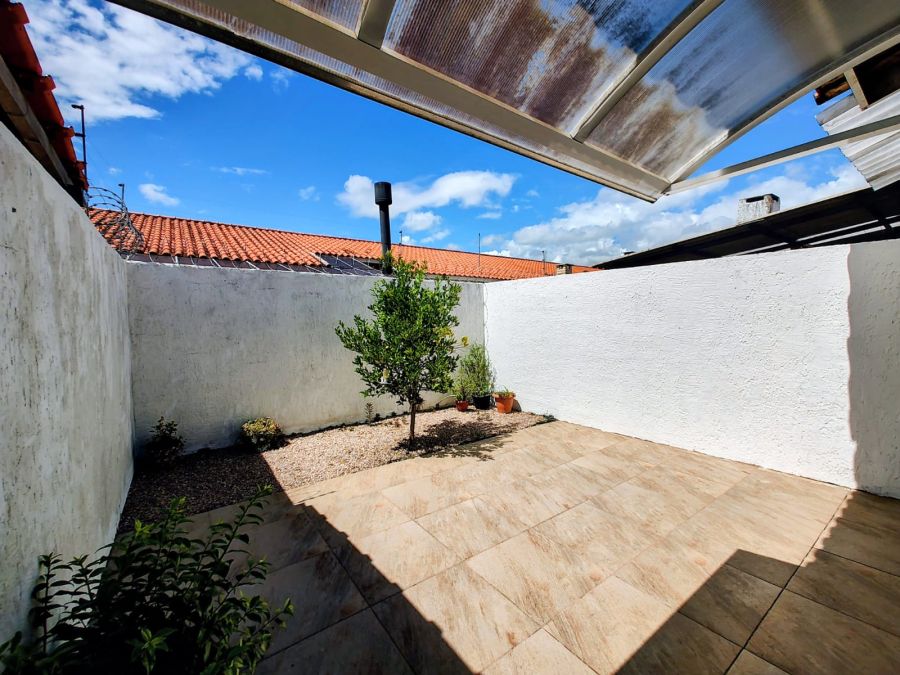 O pátio é calçado, com muro e concertina, oferecendo mais privacidade e segurança. Além disso, possui vaga de