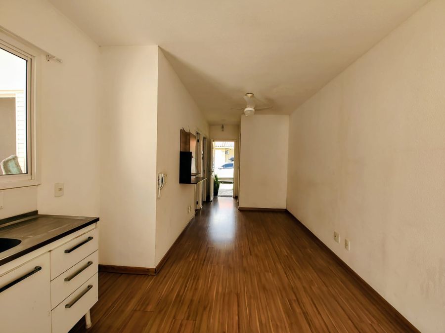 2 dormitórios, 1 banheiro com box de acrílico, sala aconchegante e cozinha funcional. O piso laminado em toda a