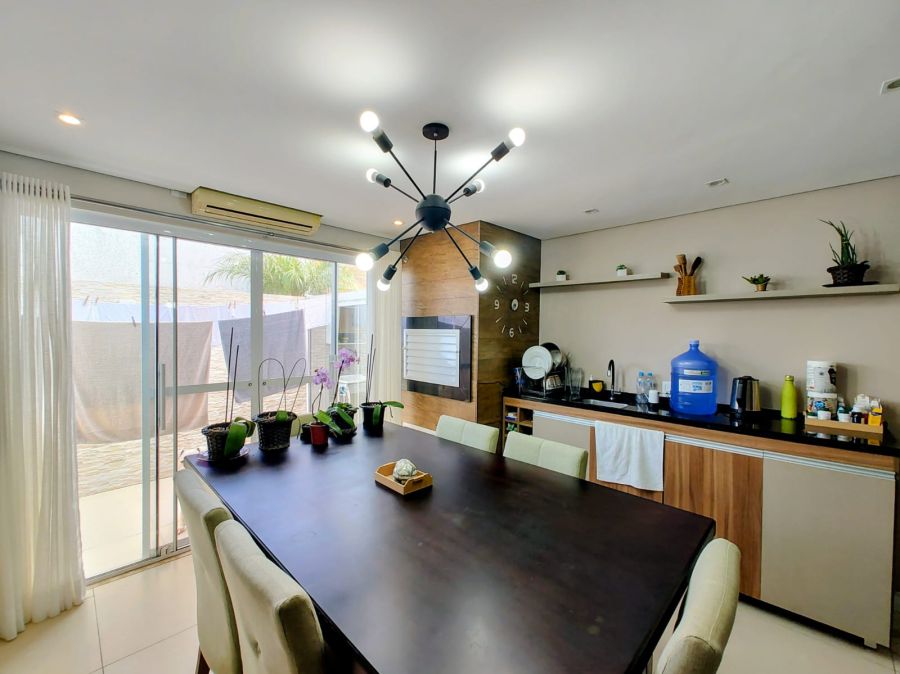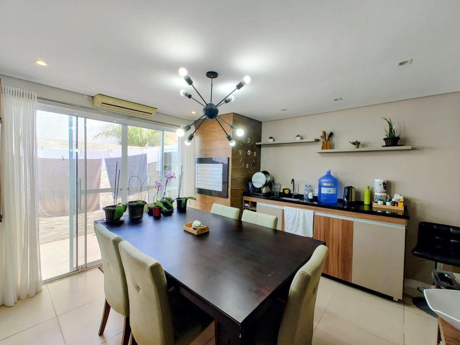 A casa conta com paredes alisadas com massa corrida, piso laminado e porcelanato, além de permanecerem no imóvel os móveis projetados no quarto de casal, quarto de solteiro, escritório, cozinha, sala de estar, avanço e banheiros — é entrar e morar!