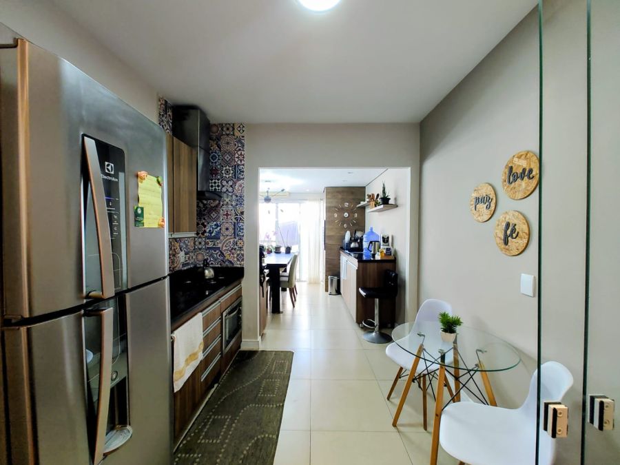 São 3 dormitórios, sendo 1 suíte, além de sala de estar com gesso rebaixado, criando um ambiente moderno e aconchegante. A varanda com churrasqueira e pia de apoio é perfeita para reunir amigos e família, enquanto o pátio voltado para o sol da tarde garante momentos agradáveis ao ar livre.