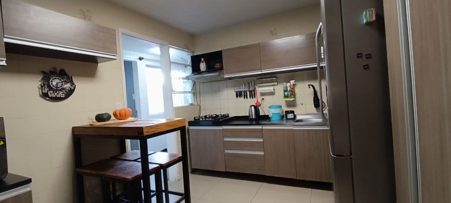 A cozinha oferece excelente distribuição, com espaço funcional para os utensílios do dia a dia e também para as refeições da família, trazendo praticidade e conforto para a rotina.