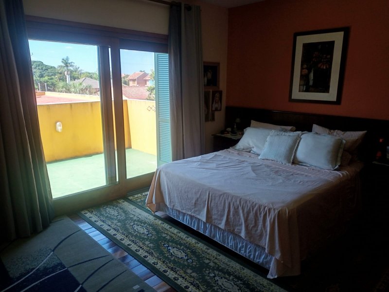 Sobrado próximo a praia - 03 dormitórios, suíte, sacada, amplo estar, jantar, escritório, lavabo, lareira, dependência de empregadas completa, churrasqueira com pátio amplo, garagem para 06 carros.