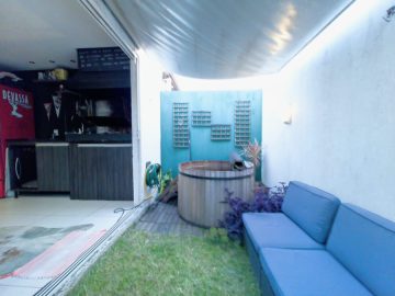 Ela conta com 2 dormitórios (sendo 1 suíte), banheiro social, sala de estar integrada à cozinha americana, além de uma agradável varanda com parrilla para seus momentos de lazer. O pátio privativo com sol da tarde traz aquela sensação de bem-estar ao fim do dia. A casa ainda dispõe de vaga de estacionamento exclusiva.