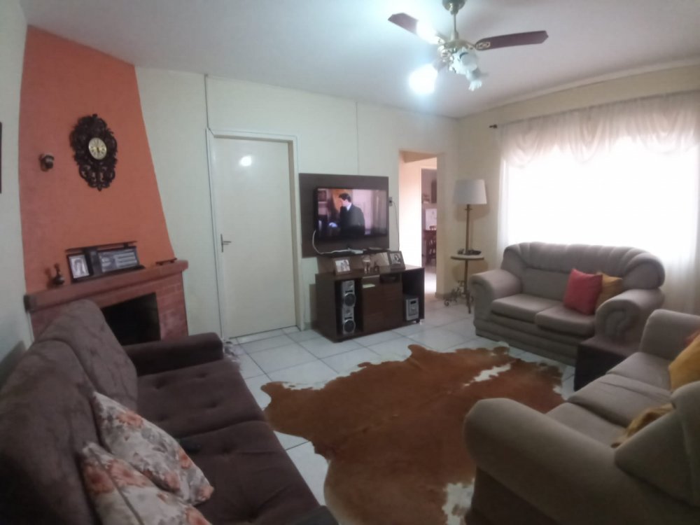 Casa com um amplo terreno, área gourmet, lareira e churrasqueira.